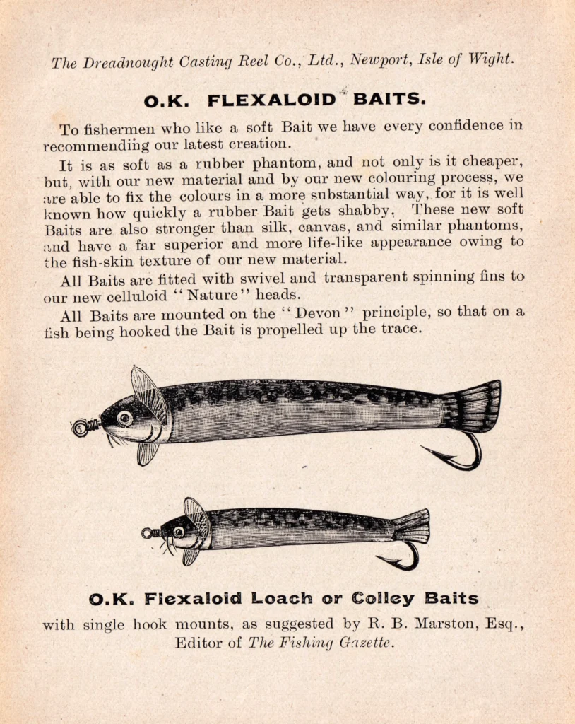 Percy Wadham was granted Patent 21,411 in March 1910. They continued to makes baits on this principle until the 1950’s.